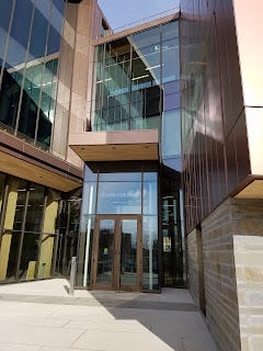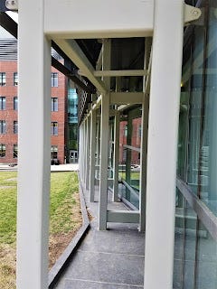 The side door to the newly renovated South College at Umass. It was the joining section between the old building and the new addition.