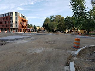 It was at this point that they began turning the main intersection of North and East Pleasant to campus into a roundabout. They pretty much got it done in the month of August.