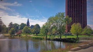 I ran into my then, dispatch partner in this wonderful lounge space in the newly renovated South College building that parked in until my shift. I was looking for some public study spaces so that I would know where to find them when I was a student again. This dispatch partner is the one Anna spent about a year trying to ruin his reputation at both of his workplaces. I look at the archives of our text conversations these days and ask myself if I was simply being used for this purpose? I had yet to meet her at this point as she wouldn't join transit until sometime later this year.