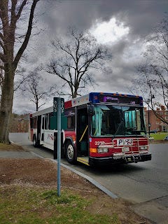 A trainee thought that I should take a picture at the main bus stop at Blanchard Hall, Mount Holyoke.