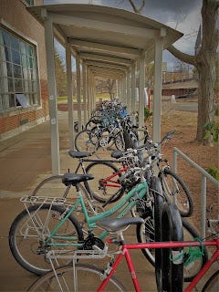I was also struck by how if you look at this bike rack sitting in front of the student union, it looked like it went on forever, into optical infinity!