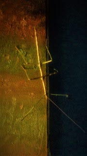 A walking stick that showed up on my painting. I had to take a picture of this to prove to myself that I was hallucinating under stress.
