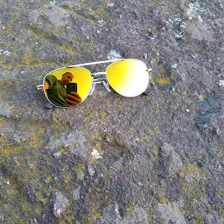 A mirror aviator selfie taken on top of the Sugarloaf Arkose.