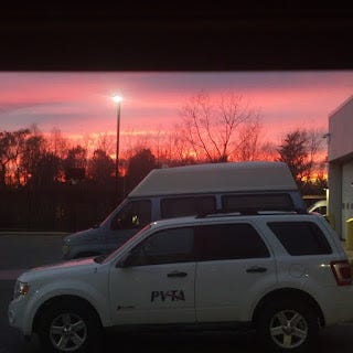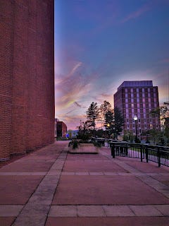 A beautiful sight as I went walking back to the garage or U-Crew. The sun was setting on the western horizon towards the Mullins center. I began to stop to take notice of these small things at this time, because they were literally the only thing that made life even a little bearable. It was around this time where I started thinking about how I would end my life if it continued to get any less bearable.