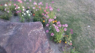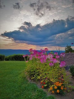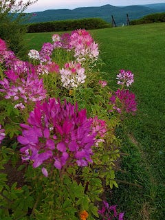I noticed the striking color of the flowers on Mount Sugarloaf in the twilight.