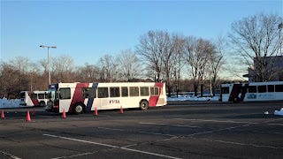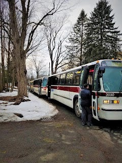 Joe managed just fine with all of these SATcO buses, but somehow his entitlement made it impossible for him to want to work with a few plow trucks being held along the North side where there was plenty of room to deal with them. Also, why would you let your trainee get into a situation where they would hit something? They should be immediately instructed that if they thought that they couldn't make something or loose sight of something, that they should stop and get out to check their clearance when in doubt.