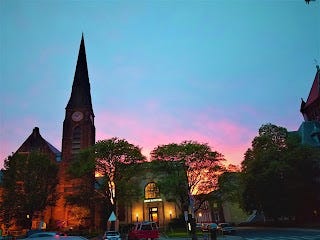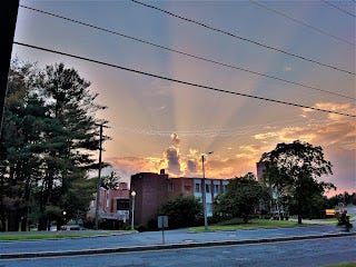 I caught this wonderful sunset with its rays appearing to radiate from the Newman Catholic Center at Umass.