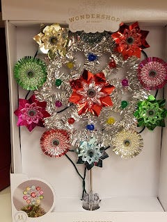 As the holidays approached, I found this tinsel star tree top that looked like vintage 70s stars. I should have bought it, because my star needs light bulbs.