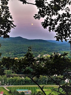 The full moon from the eastern overlook on the side of Mount Sugarloaf.